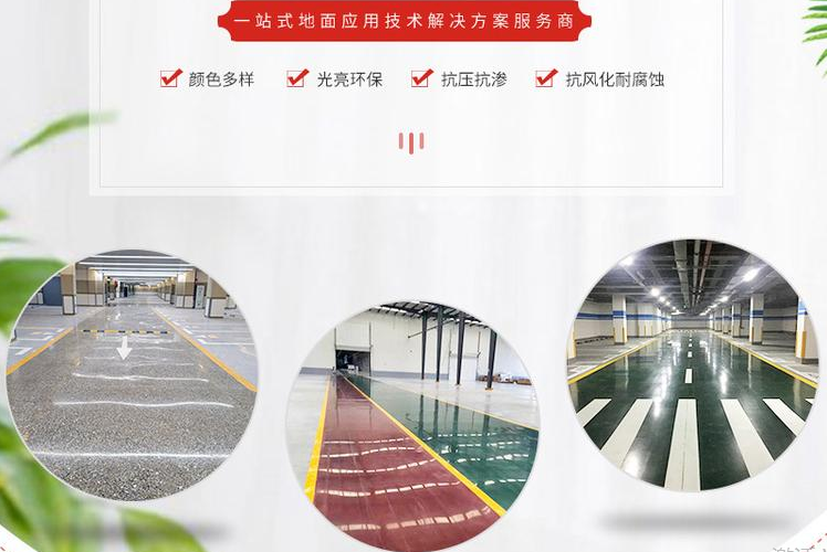 堅(jiān)硬耐磨、防塵防滑、抗壓抗?jié)B、抗風(fēng)化、耐腐蝕,可承載各類叉車的高頻使用,光亮環(huán)保、色彩豐富。