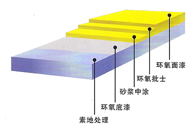 5、環(huán)氧面涂:涂刷環(huán)氧樹脂面漆。