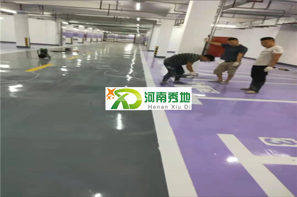 地下車庫(kù)聚氧脂超耐磨環(huán)氧地坪施工現(xiàn)場(chǎng)